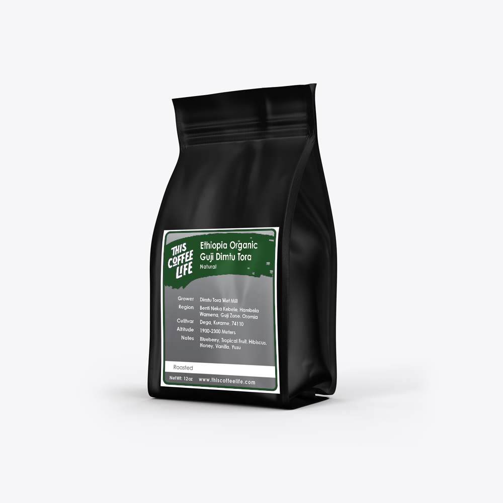 This coffee underwent natural (dry) processing at the Dimtu Tora site. Ripe cherries were hand-sorted and sun-dried on raised beds for roughly two weeks. The beans were dried until they reached a moisture content of 10–12%.