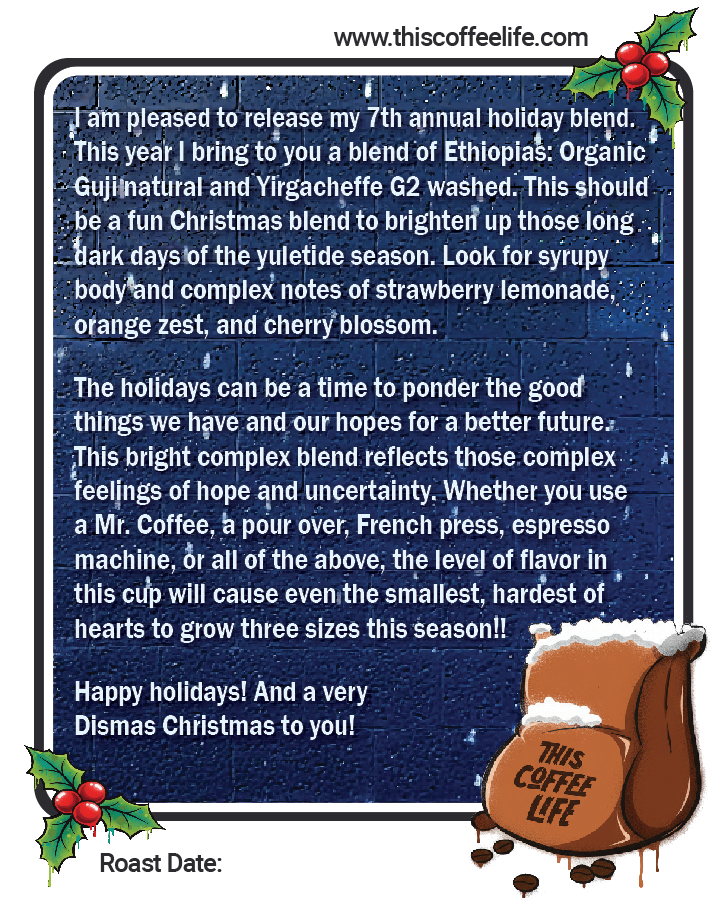 I am pleased to release my 7th annual holiday blend.