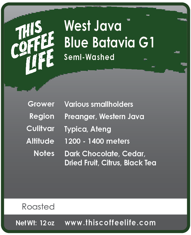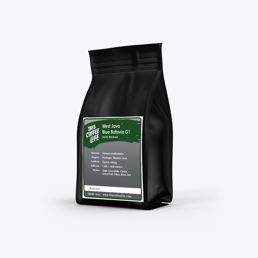 The Dutch first introduced the Typica variety here, although much of the original strain was lost in a widescale leaf rust outbreak in the 1800s. The Ateng varietal, which makes up a big part of this Blue Batavia G1 lot, is a common varietal hailing from the Timor Hybrid cross between Arabica and Robusta coffee.